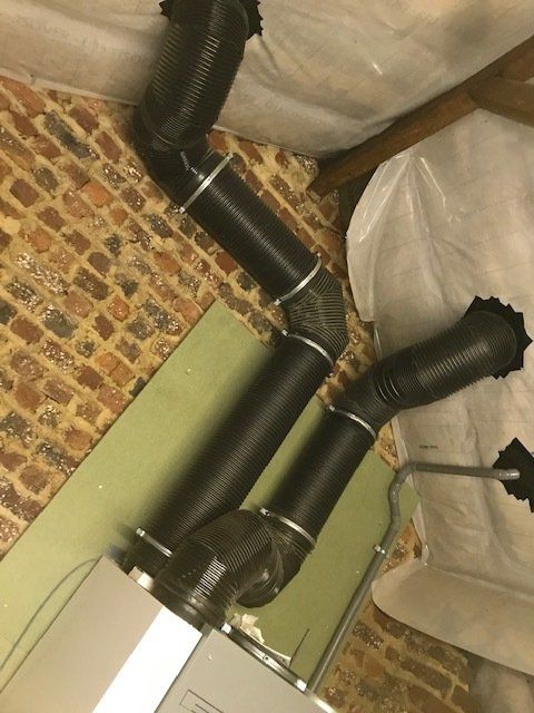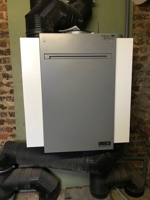 De vochtige en vervuilde lucht wordt dan aangezogen via luchtkanalen in vochtige kamers zoals de keuken en badkamer.