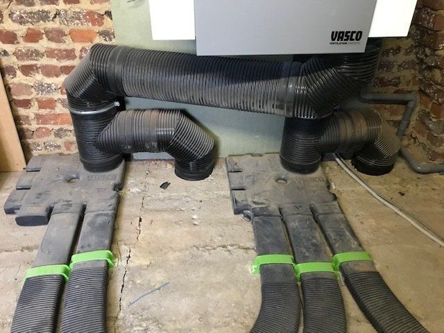 Een netwerk van leidingen doorheen de woning verspreidt deze lucht langs ventilatieroosters in elke kamer zonder dat de verschillende luchtstromen elkaar kruisen.
